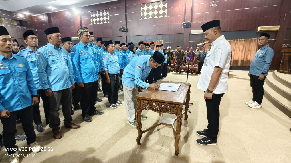 TEBO, Berandajambi – Bupati Tebo Agus Rubiyanto, S.E., M.M. mengukuhkan Pengurus Persatuan Perangkat Desa Indonesia (PPDI) Kabupaten Tebo periode 2025–2030 sekaligus menyerahkan Nomor Induk Perangkat Desa (NIPD) kepada perangkat desa se-Kabupaten Tebo, Kamis (22/01/2026).