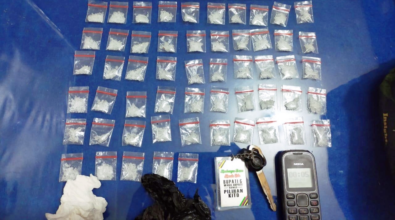 Tim satresnarkoba berhasil mengamankan seorang pelaku, dan 55 plastik klip kecil berisi narkoba jenis sabu, satu buah tas ransel, satu unit hp jenis nokia senter, satu unit sepeda motor N-MAX dengan nopol BH 4286 UV.