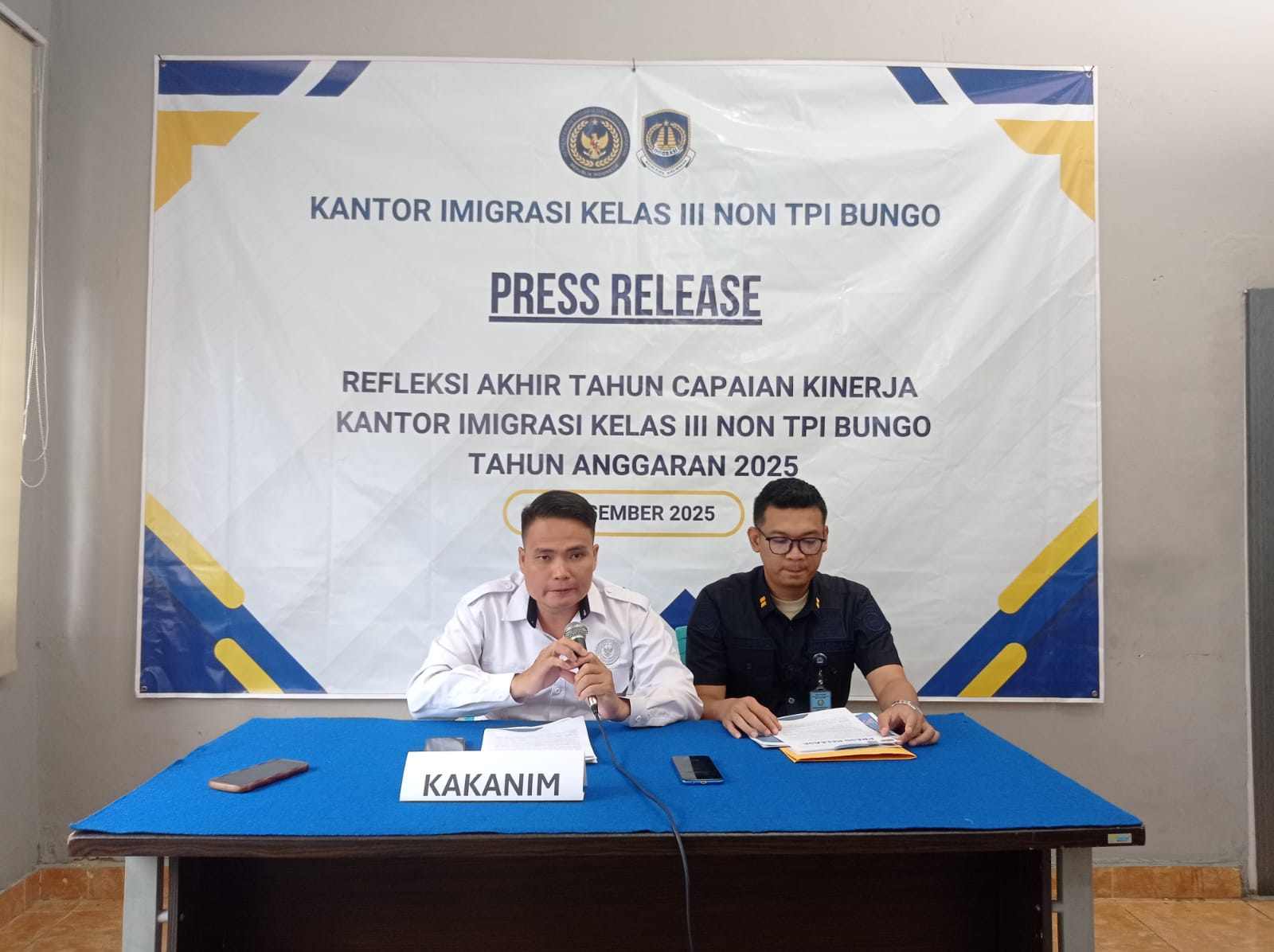 Kepala Kantor Imigrasi Bungo, Ferry Rizki Baifat, menyampaikan capaian tersebut dalam kegiatan Refleksi Akhir Tahun 2025 yang digelar Kantor Wilayah Direktorat Jenderal Imigrasi Jambi, Kamis (22/12/2025).