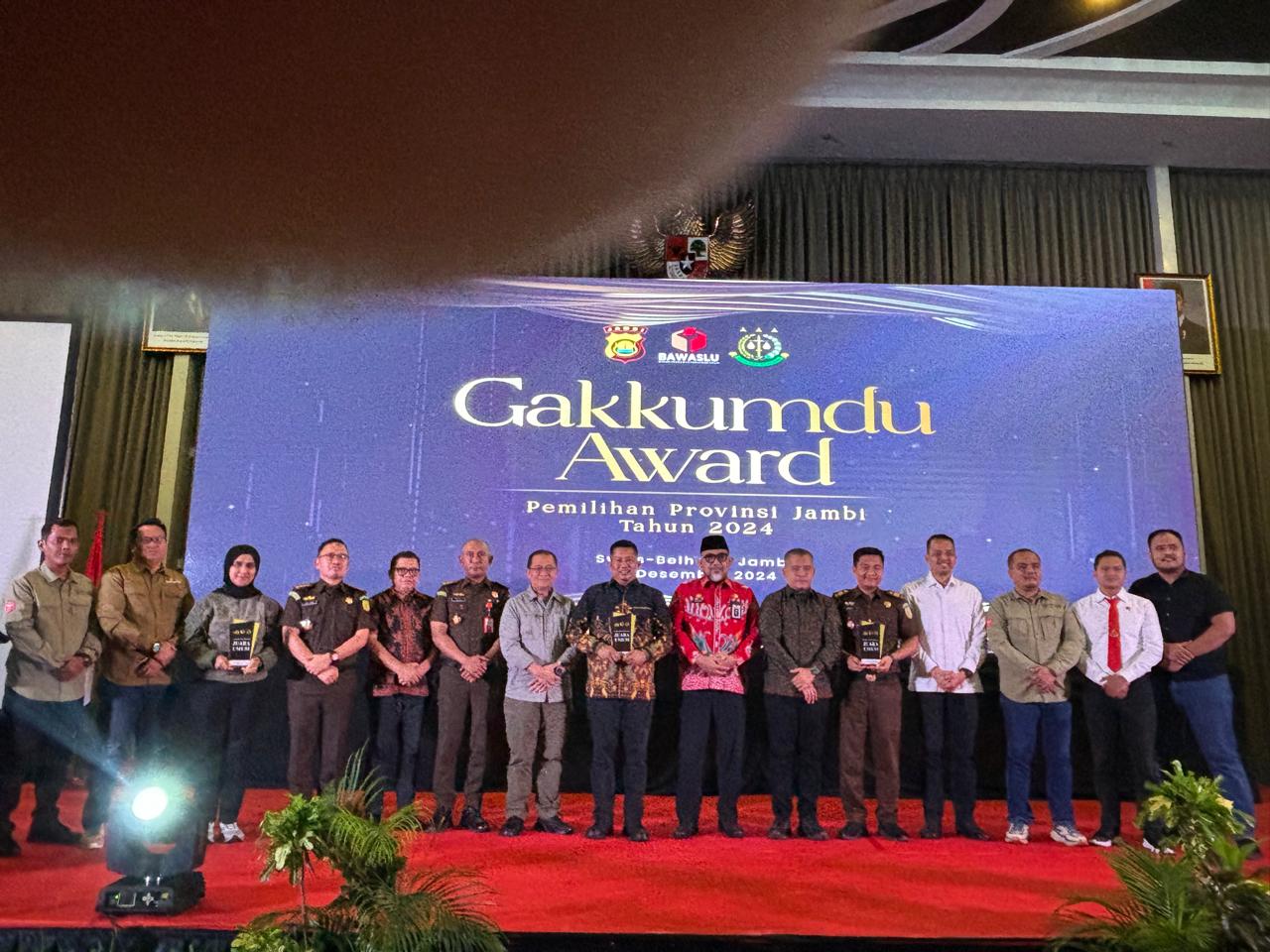 BUNGO, Berandajambi - Sentra Penegakan Hukum Terpadu (Sentra Gakkumdu) Kabupaten Bungo meraih juara umum penghargaan dalam gelaran Gakkumdu Award 2024 Pemilihan Kepala Daerah, yang diselenggarakan oleh Badan Pengawas Pemilu (Bawaslu) provinsi Jambi.