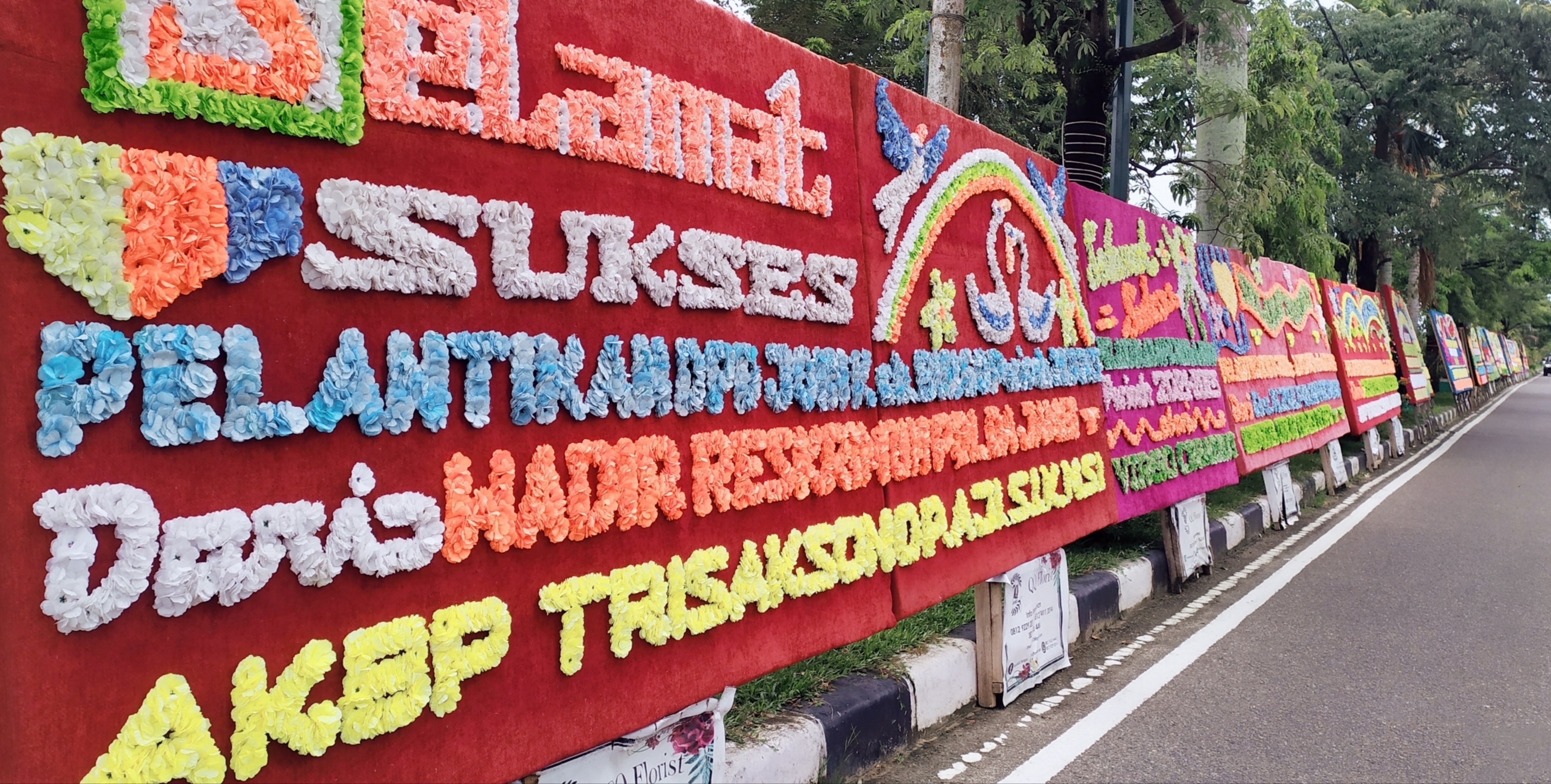 Dari pantau media, papan bunga ucapan selamat berwarna-warni ikut memeriahkan acara pelantikan DPD JOIN Bungo periode 2021-2023. Bahkan sepanjang Jalan Sultan Thaha, tampak berjejer papan ucapan dari Kepala Daerah, Forkompinda, Kepala OPD, Camat, Pengusaha, serta tempat-tempat usaha.