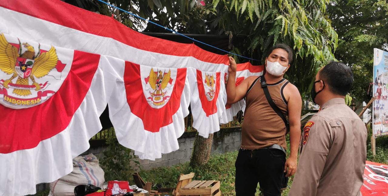 “Hari ini kita mampir ke pedagang musiman bendera merah putih menyambut hari kemerdekaan. Tadi kita ngobrol-ngobrol sekilas omzetnya turun jauh. Kita mampir, kita borong. Mudah-mudahan dapat meningkatkan produktivitasnya,” ujar Kapolres.