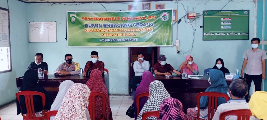 BUNGO, Berandajambi – Pemerintah Dusun Embacang Gedang, Kecamatan Tanah Sepenggal Lintas, Kabupaten Bungo sukses serahkan Bantuan Langsung Tunai Dana Desa (BLT DD).
